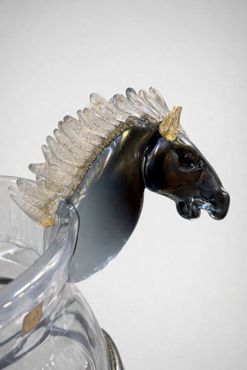 Кубок из прозрачного стекла, которое называется кристалло (cristallo). Оно знаменито своей исключительной чистотой и красивой игрой света.