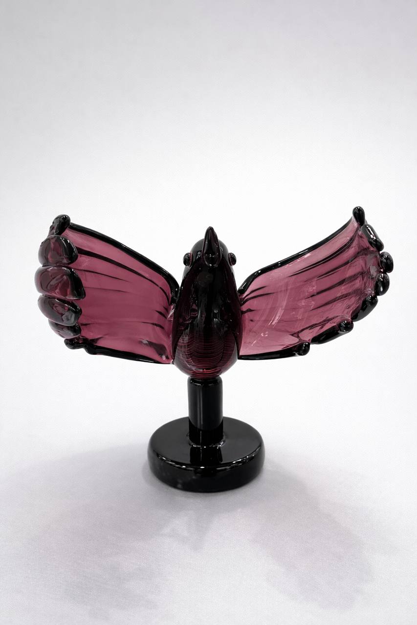 Райская птица выполнена из стекла благородного синего цвета. Муранские мастера получают такой оттенок с помощью соединений кобальта, меди или железа, которые добавляют в массу расплавленного стекла на этапе его приготовления.